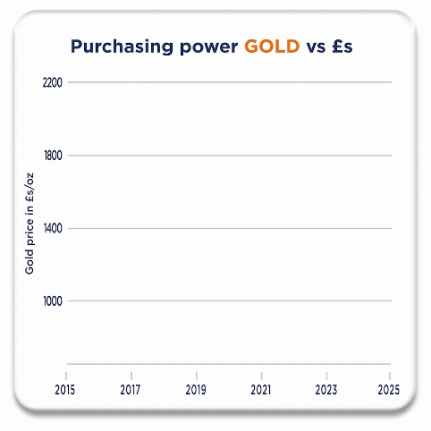 So while the pound’s lost 50% of its value since 2004, gold’s grown by 146% in the last decade alone. While your bank savings got mugged by inflation, gold owners were laughing all the way to… well, not the bank.