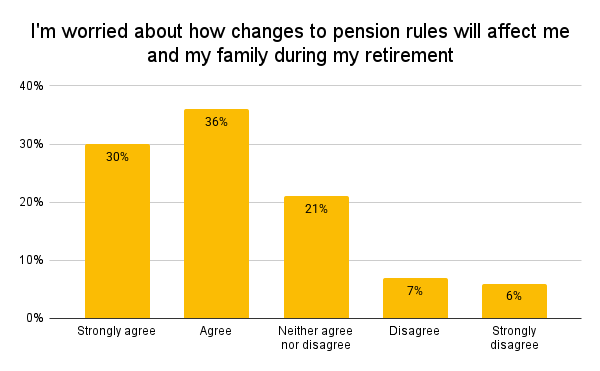 Our recent survey with over 2,000 UK adults, 55 years of age or older, shows that around two-thirds of Brits (66%) are worried about how changes to pension rules will affect them and their families during retirement, and 71% feel their overall financial security is under threat from the government’s policies.